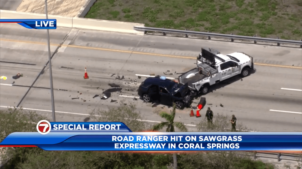 2 adults, infant hospitalized after SUV collides with road ranger vehicle on Sawgrass Expressway in Coral Springs