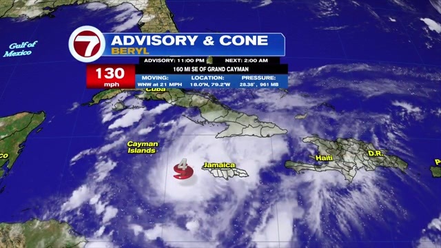 Hurricane Beryl roars by Jamaica after killing at least 7 people in the southeast Caribbean