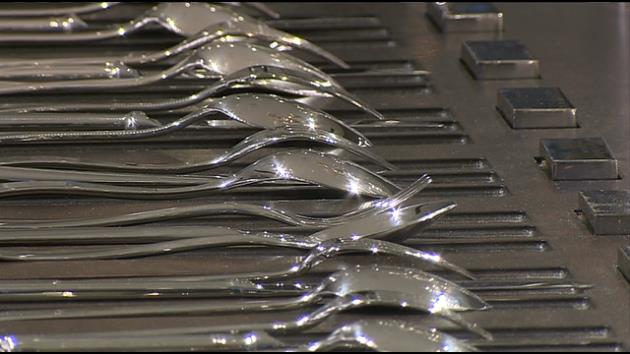 Justin Trabert: "This is actually our Malmaison flatware collection, and we keep this under lock and key because it’s so special. These actually are diamond encrusted flatware pieces for those people that have everything. Each piece is hand-crafted in Paris by our artisans, and they are made of sterling silver 925 and pavé diamonds."