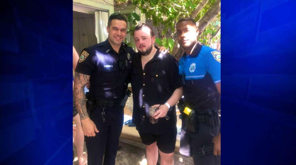 Miami Beach Police officers posed with actor and Battle of Winterfell survivor John Bradley, who plays Samwell Tarly on the hit HBO show.