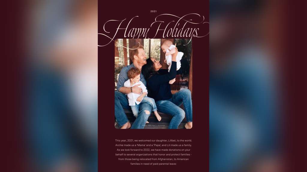 The royal pair then explained that they were donating money this year to several organizations “that honor and protect families,” including those that focus on Afghan resettlement, and organizations supporting paid parental leave in the US.