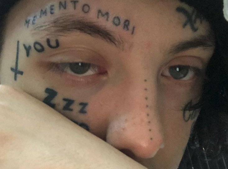 “MOMENTO MORI,” Xan wrote on the caption of a photo showing his new face tattoo. “miss you Mac,y’all can start hating me now.”