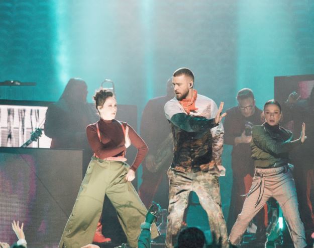 Timberlake climbed steps out into the stadium, down a runway to a stage while singing “Rock Your Body.” He was constantly surrounded by dancers, enthusiastic musicians and jumping audience members, so much so that it made the star of the show seem small.