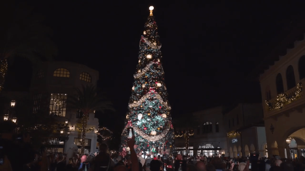 Guests gather in Orlando to witness Christmas tree lighting ceremony at Disney Springs