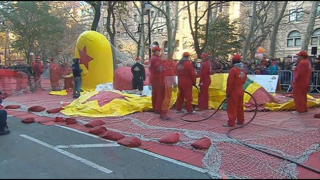 Crowds were packed along the route near Central Park as balloons from SpongeBob to Snoopy and Hello Kitty were inflated and then tied down under large nets.
