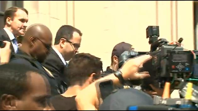 As Fogle left the courthouse, several people jeered him amid a throng of TV cameras, onlookers and protesters.