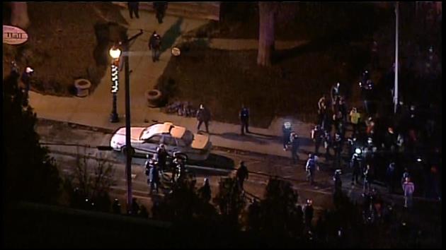 Demonstrators returned Tuesday to the riot-scarred streets. But with hundreds of additional troops standing watch over neighborhoods and businesses, the protests had far less destructive power than the previous night. However, officers still used some tear gas and pepper spray, and demonstrators set a squad car on fire and broke windows at City Hall.