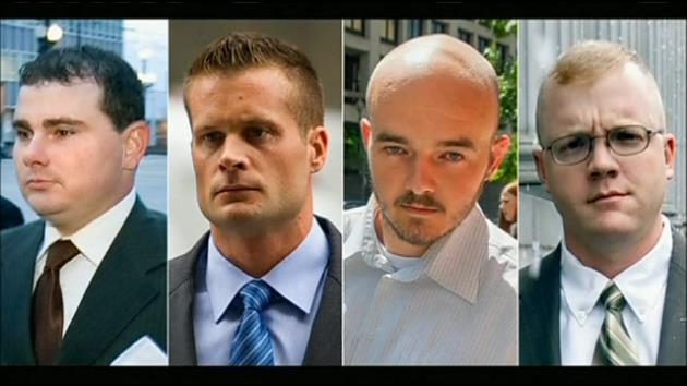 Appearing in court wearing leg shackles and prison garb, the former contractors insisted they were innocent.