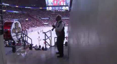 Pouliot’s stage is the BB&T Center’s Sections 108 and 109. "I do my thing, take my stop sign, I play guitar,’" he said.