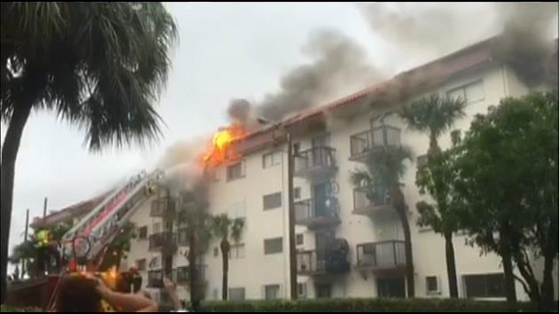 Four units on the top floor of Alameda Towers, in the area of West 21st Court and 54th Street in Hialeah, have been left badly damaged after the lightning struck and ignited a fire. Hialeah Fire Rescue units were dispatched to the scene.