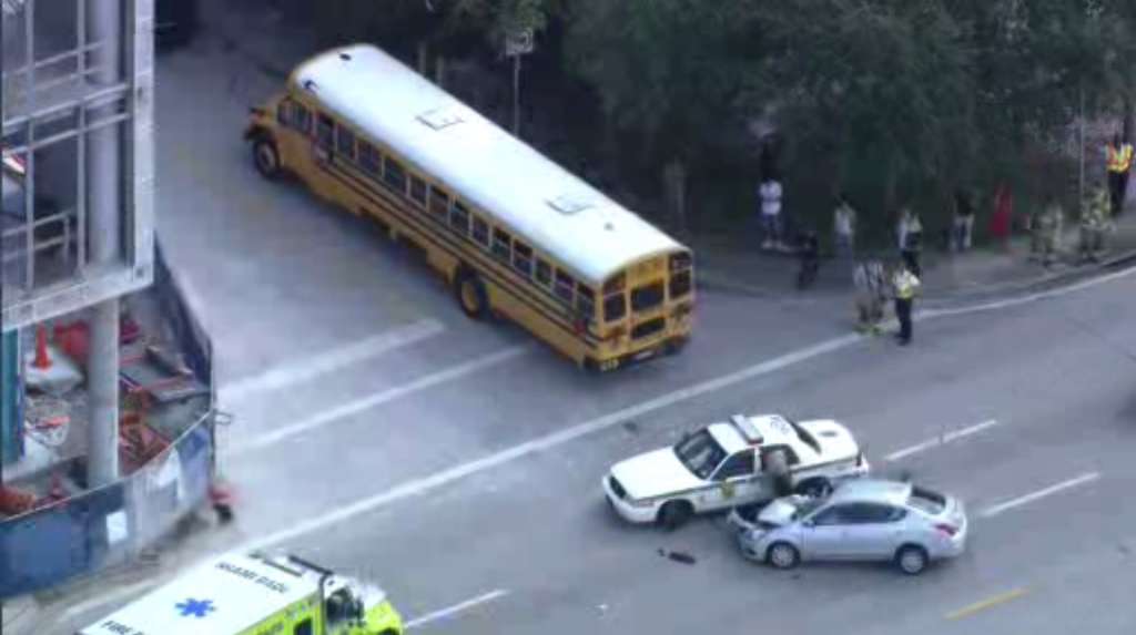 NORTHEAST MIAMI-DADE, FLA. (WSVN) - At least one person has been injured in a crash involving a school bus in Northeast Miami-Dade.