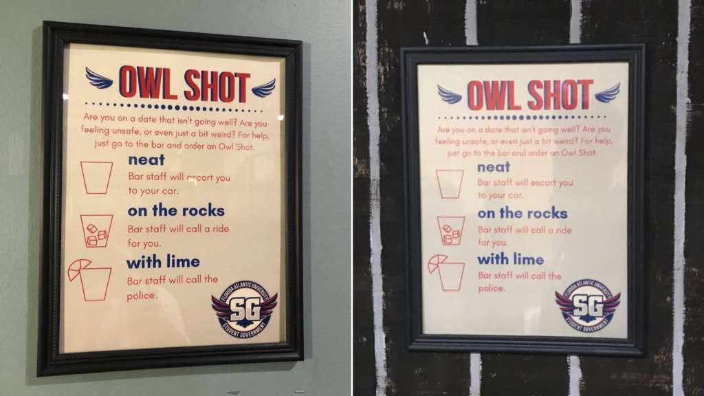 First, order a drink called the “Owls Shot.” Then, depending on what’s happening, say one of the three coded phrases displayed on the posters. Based on the code, here’s how the bartenders will respond: