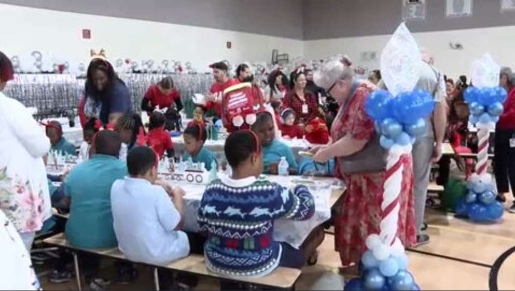 Glades Middle School students in Miramar had their gym turned into a winter wonderland full of toys and goodies.