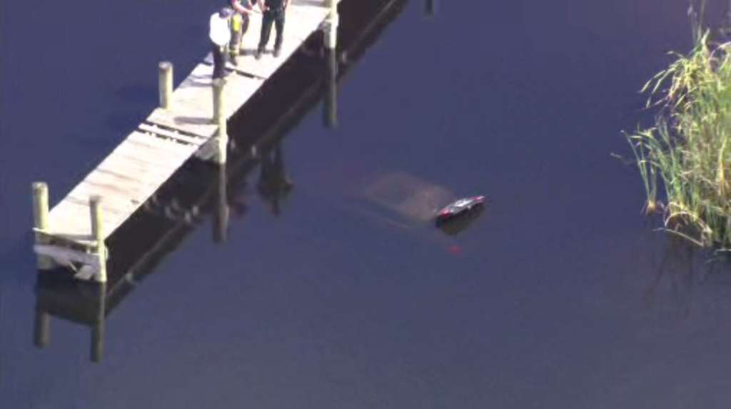 7SkyForce HD hovered above the scene where an Audi with an open trunk could be seen submerged in the water near a boat ramp.