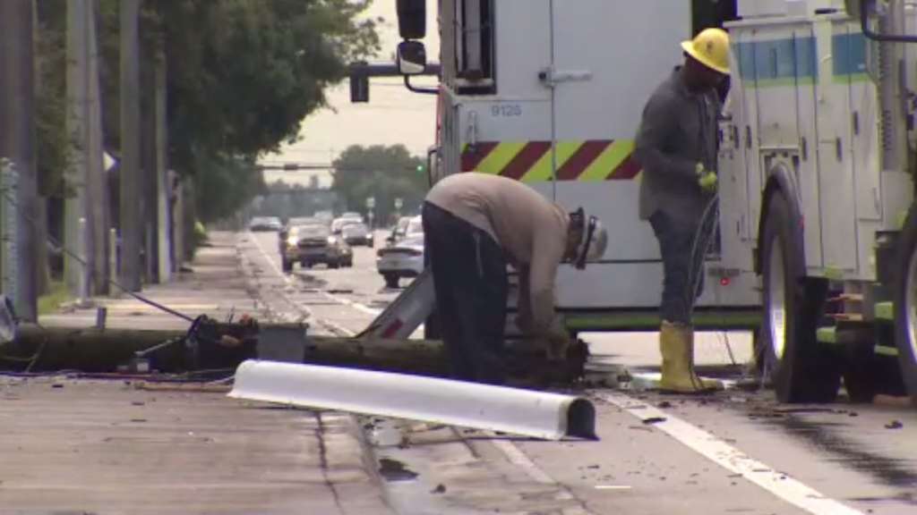 FORT LAUDERDALE, FLA. (WSVN) - Crews are working to repair some downed power lines after a dump truck crashed into a pole in Fort Lauderdale.