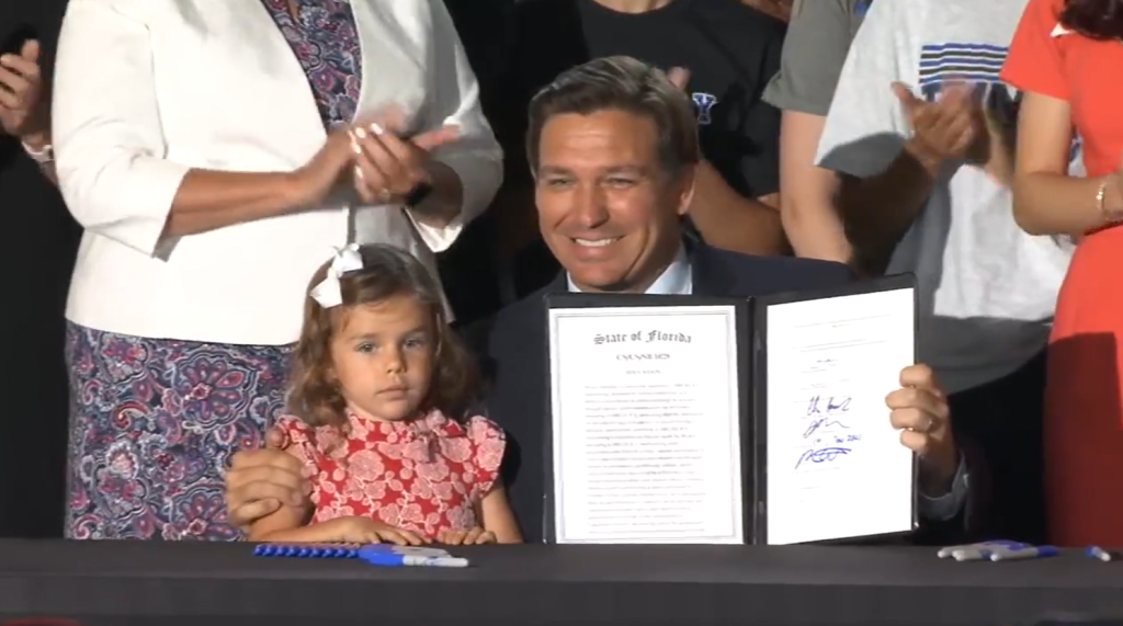 “In Florida, girls are going to play girls sports and boys are going to play boys sports,” Gov. Ron DeSantis said as he signed the bill into law at a private Christian academy in Jacksonville that would not be subject to the law. “We’re going to make sure that that’s the reality.”