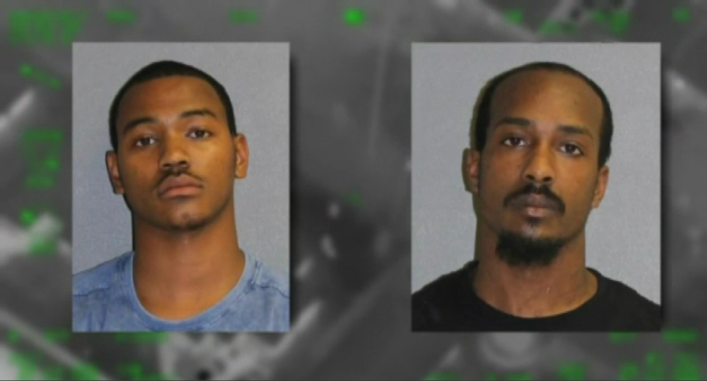 As they fled from police, the men jumped into a backyard, where a homeowner’s dog was ready to pounce.