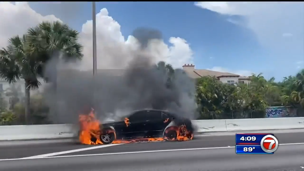 NORTH LAUDERDALE, FLA. (WSVN) - A car engulfed in flames could be seen on the Florida Turnpike in North Lauderdale.