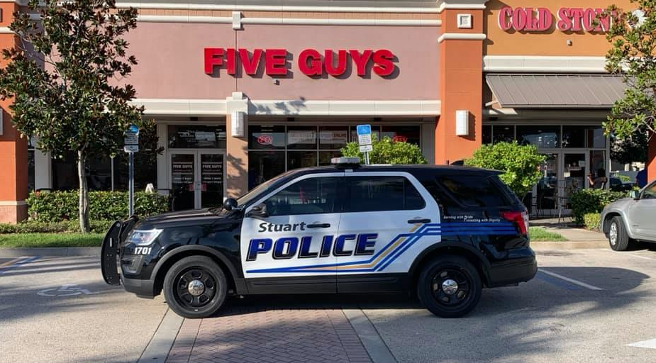 According to Stuart Police, officers received a report of a fist fight taking place inside of a Five Guys burger restaurant.