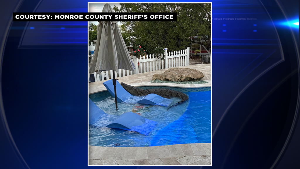 KEY LARGO, FLA. (WSVN) - A Monroe County sheriff’s sergeant and a homeowner teamed up to remove an unexpected visitor from a backyard pool in Key Largo on Friday morning.