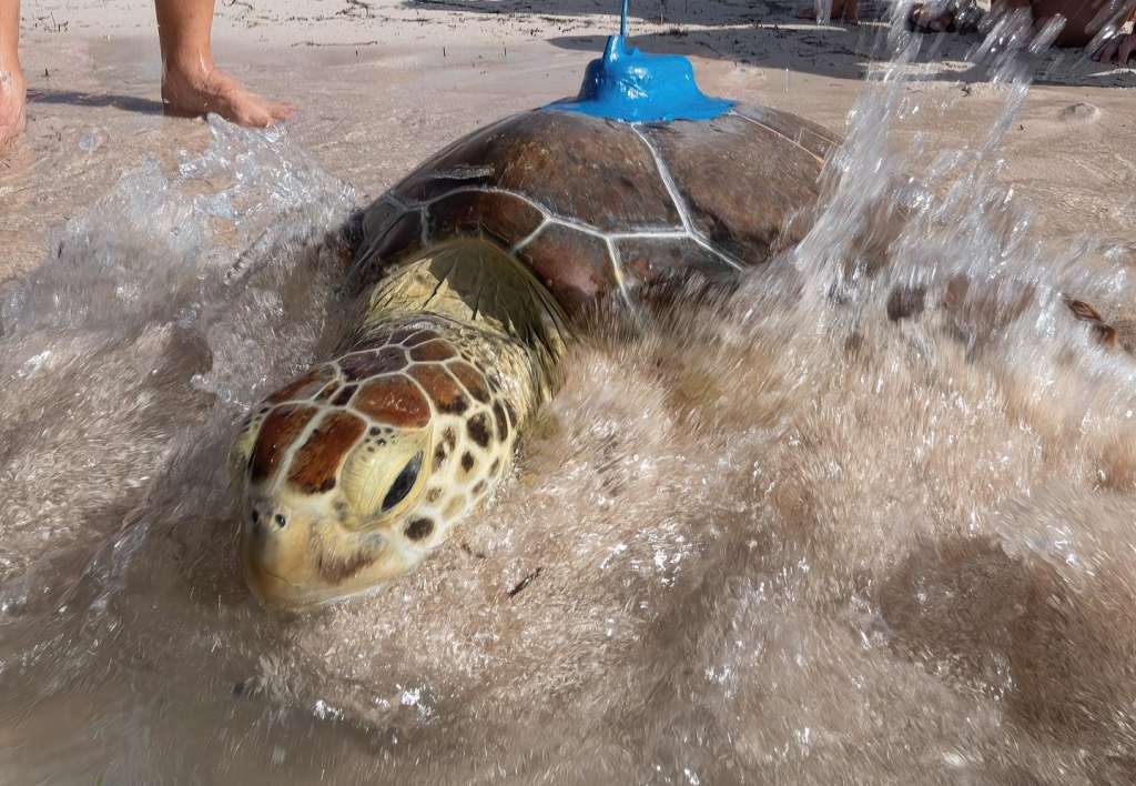 MARATHON, Fla. (AP) — A juvenile green sea turtle rehabilitated at the Florida Keys-based Turtle Hospital was fitted with a satellite-tracking transmitter and released Friday to join an online race that follows long-distance migrations of sea turtles.