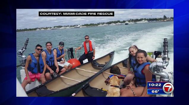 The Fire Rescue Fire Boat was eventually able to help all seven, along with two dogs that were with them.