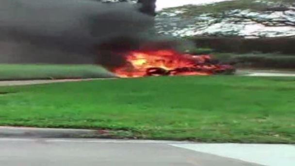 A 7News viewer captured the burning vehicle at the corner of Lyons Road and Copans Road, at around 10 a.m.