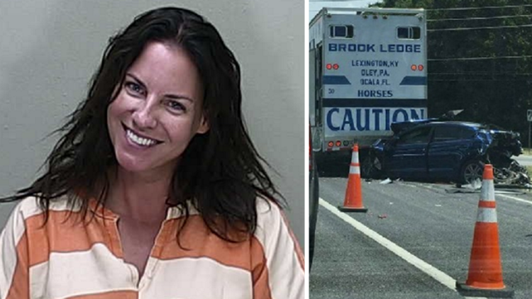 Angenette Welk, 44, was arrested last Thursday in Marion County after officers said she failed to brake in time and rear-ended a Hyundai Elantra, which ended up crushed between Welk’s vehicle and a tractor-trailer in front, WKMG reported. The crash happened just after 12 p.m.