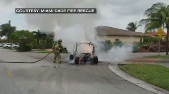 SOUTHWEST MIAMI-DADE, FLA. (WSVN) - An off-duty Miami-Dade Police officer narrowly avoided injury after, officials said, his utility terrain vehicle caught fire, Wednesday morning.