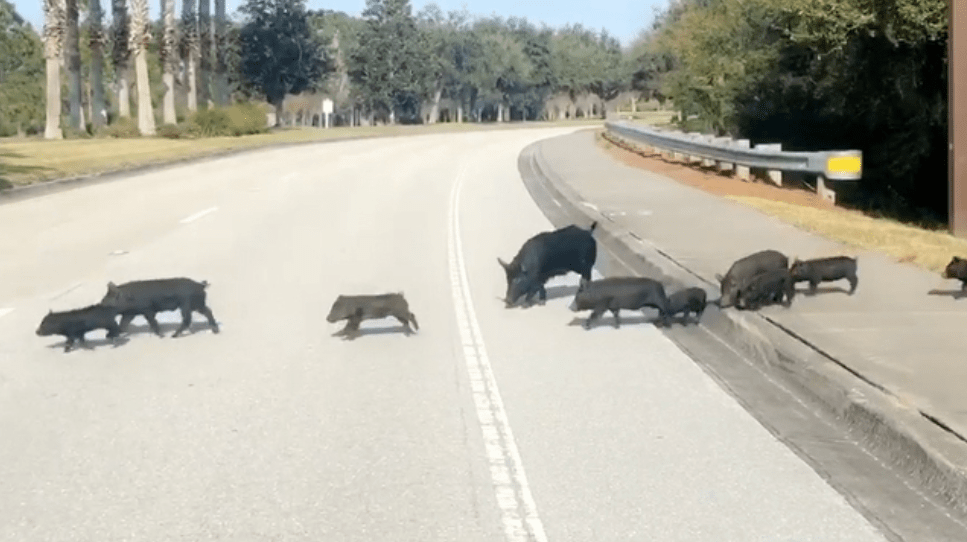 LAKEWOOD RANCH, Fla. (WSVN) — A steady stream of pigs temporarily blocked a Florida road on Friday.