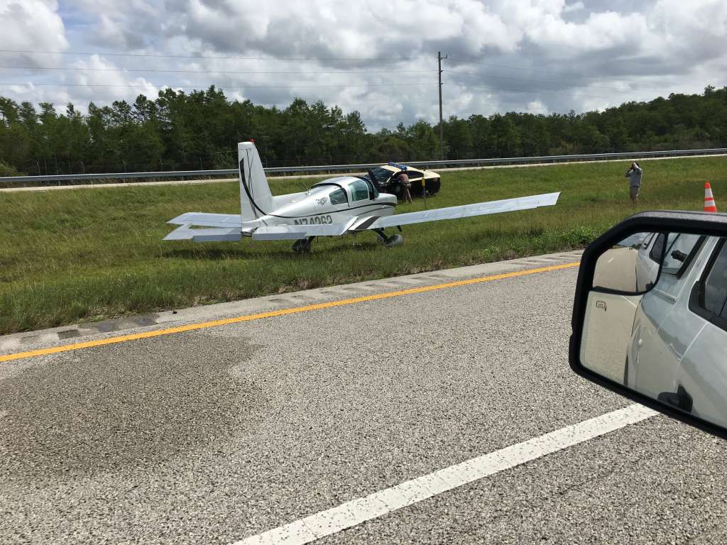 According to officials, the single-engine plane made the landing near Mile Marker 53. The pilot safely landed on the median of the highway.