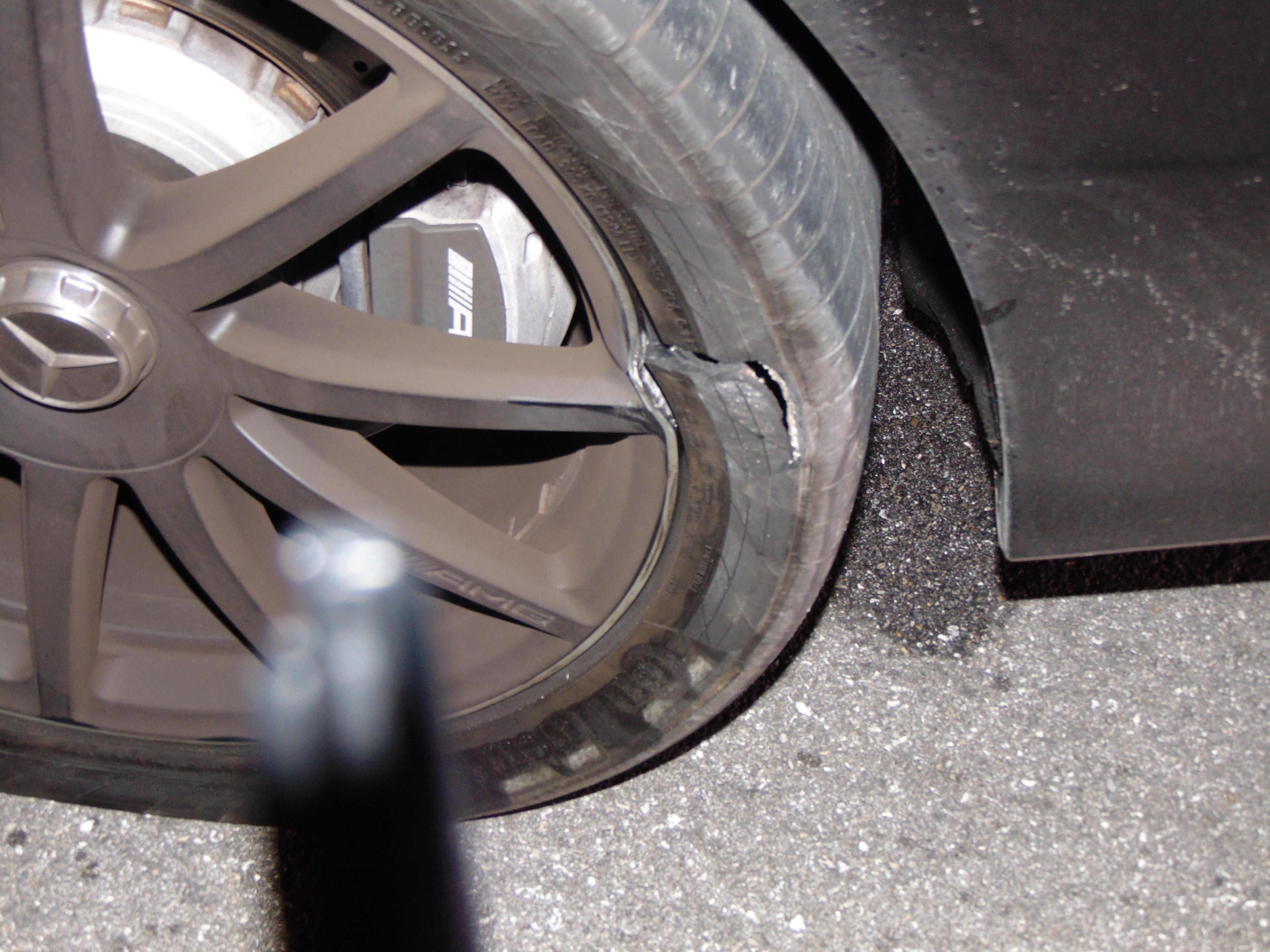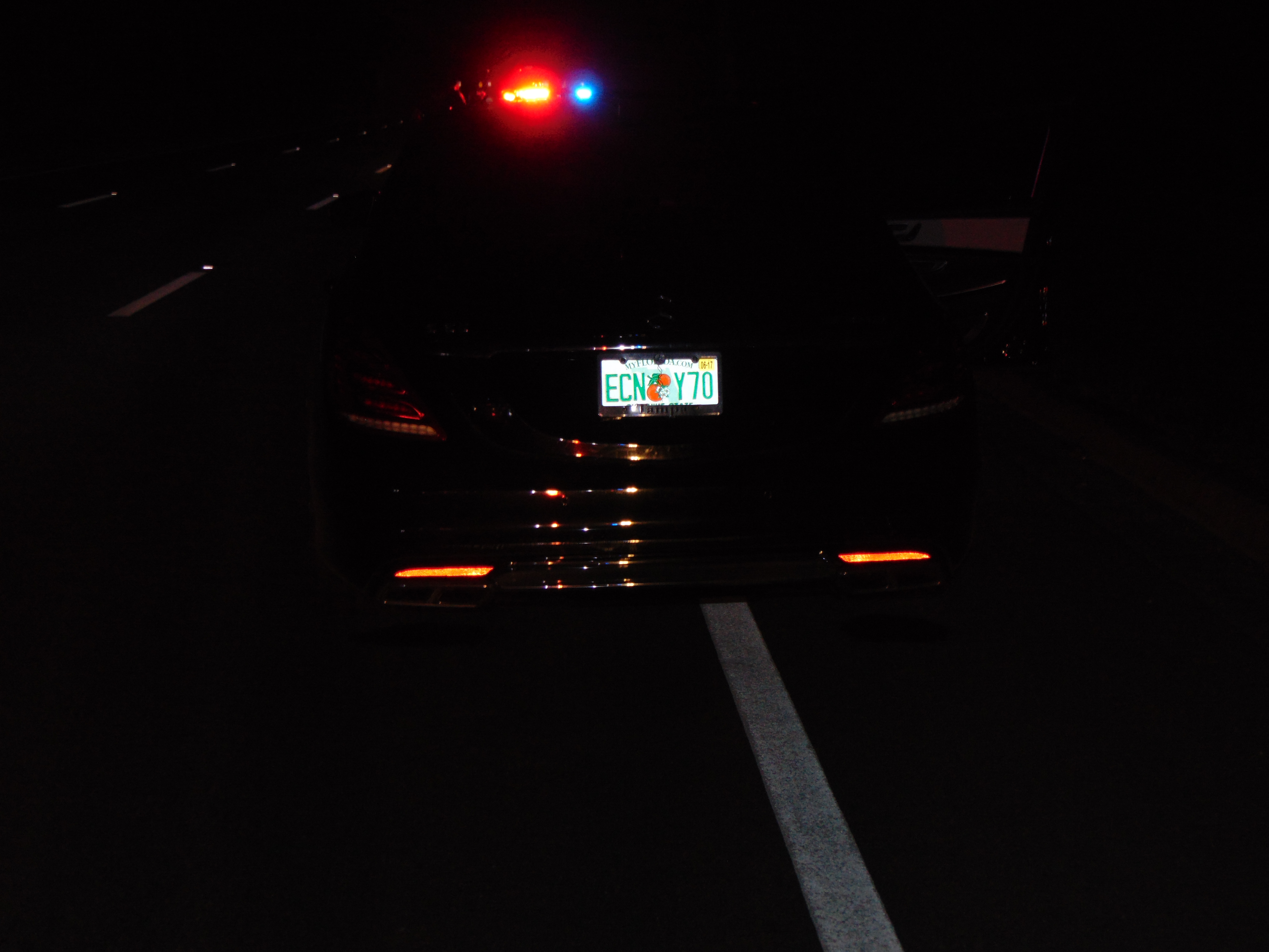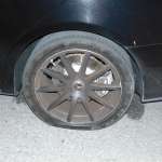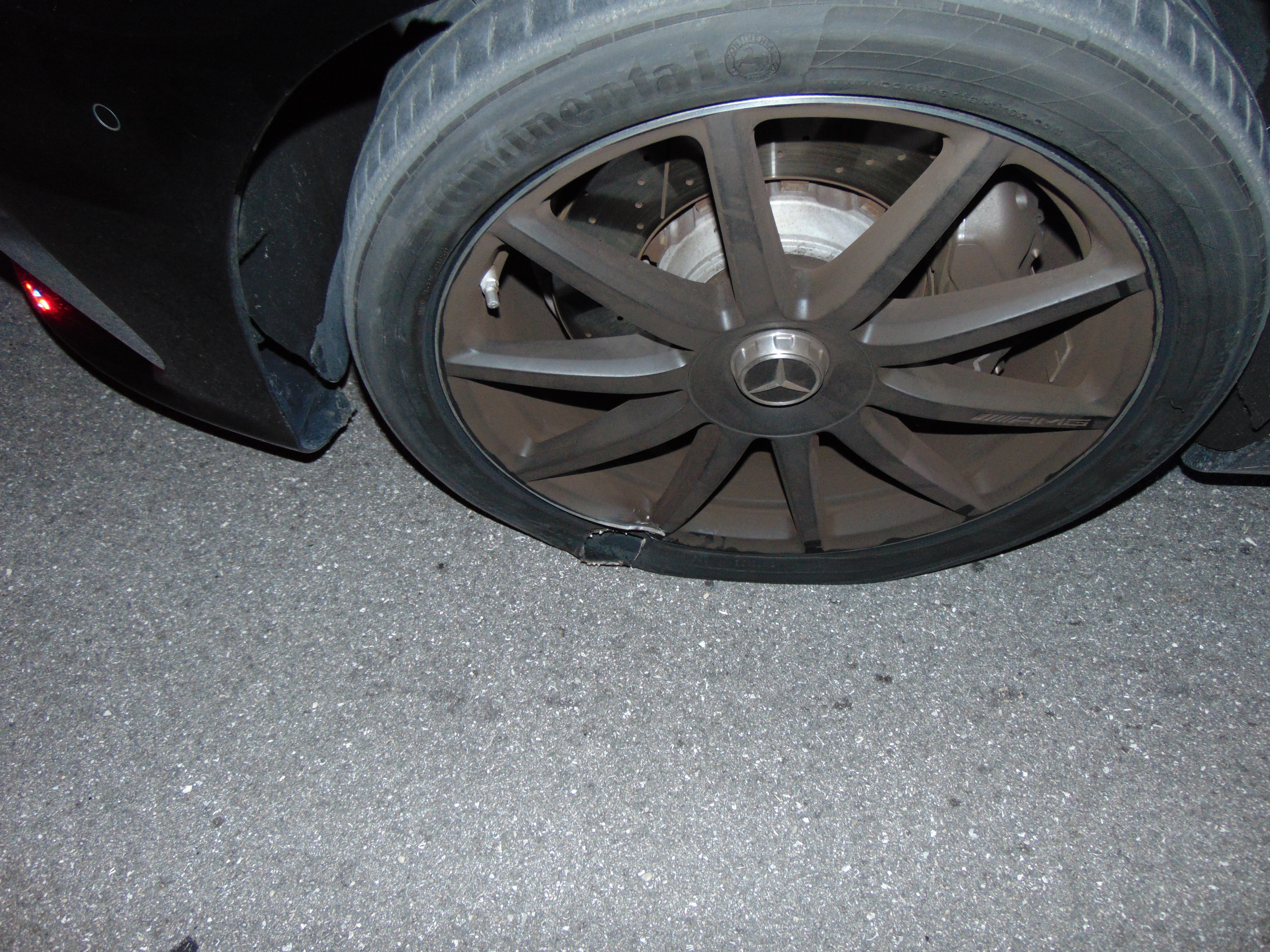 Police found the Woods sound asleep behind the wheel, according to an incident report. The engine was running, the brake lights were on and the right turn signal was blinking. Police also released photos of his car that showed both tires flat and minor damage around the bumpers.