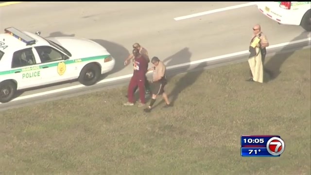 Miami-Dade Police received the call about a man dressed in red who ran across the runways.