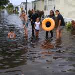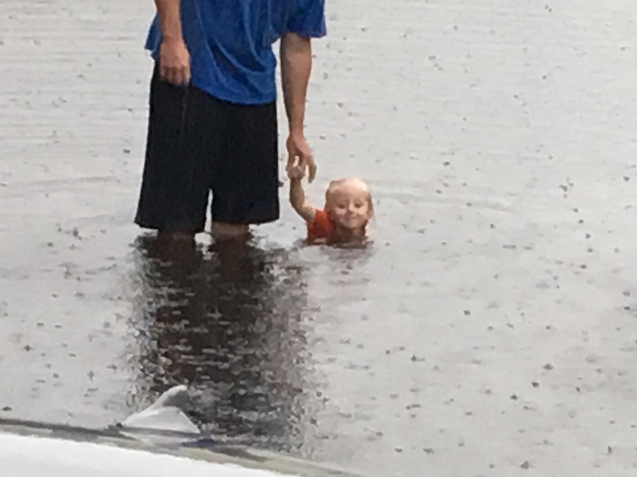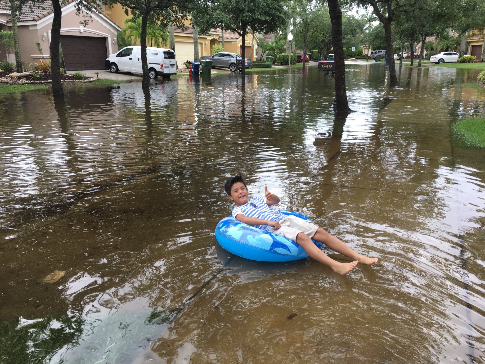 People in one neighborhood off Vista Felari were forced to leave their cars at the entrance and walk home. Kids even seen bringing out their canoes.