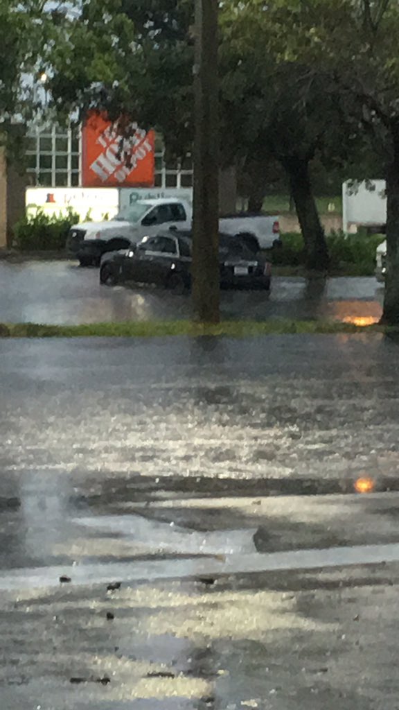 Several cars were submerged under water at the Sawgrass Mills Mall parking lot in Sunrise, leaving motorists stranded, and the on and off rain created rivers in the roadway.