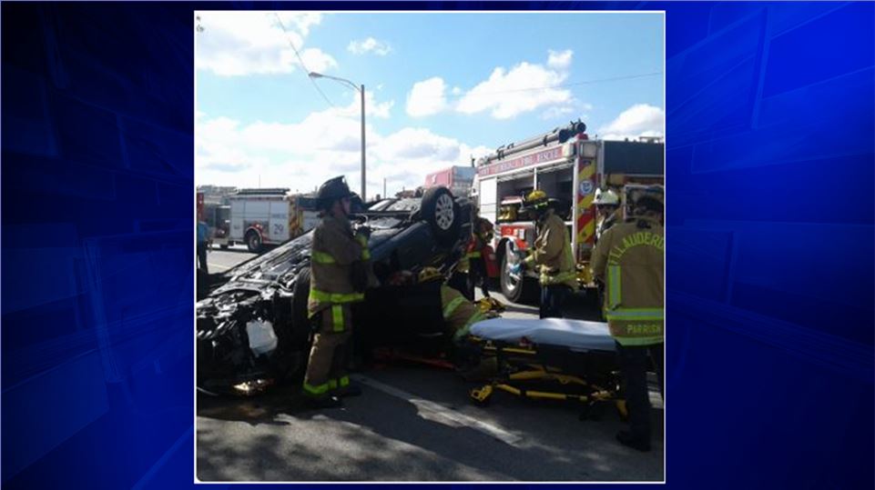 FORT LAUDERDALE, FLA. (WSVN) - A rollover crash in Fort Lauderdale trapped a person inside a car, Thursday afternoon.