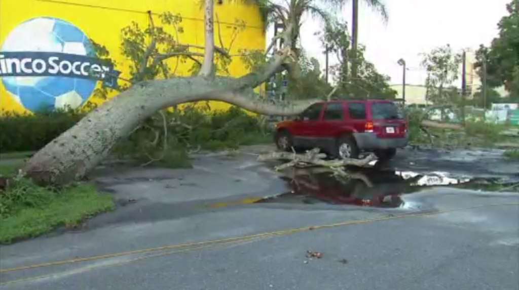 TAMPA, FLA. (WSVN) - Strong winds toppled a tree onto a man’s SUV in Tampa.