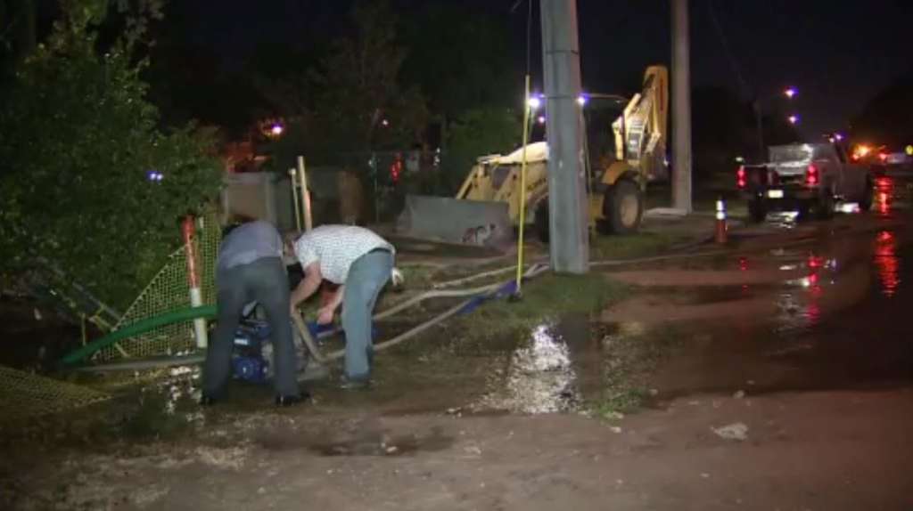 The rupture sent water into the street along Southwest 40th Avenue near 54th Street.
