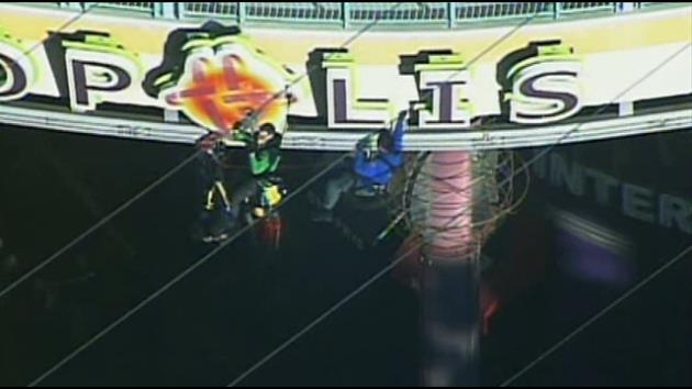 The company also contacted the fire department initially to report the stuck “flyer,” said Tom Brumy, director of marketing for the Fremont Street Experience.