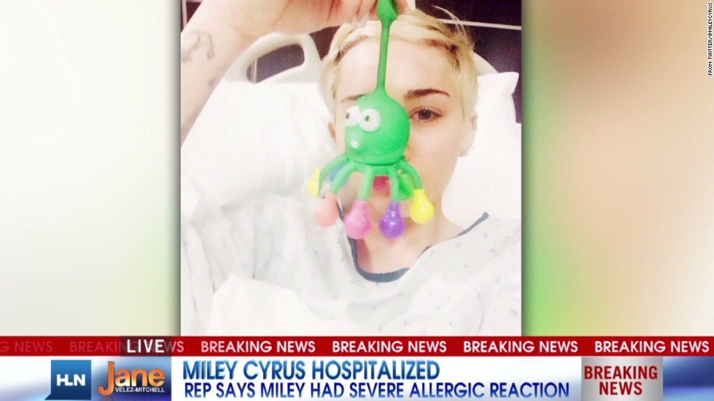 Cyrus said on Twitter that she’s heartbroken to miss the show. She also posted a photo of herself wearing what appears to be a hospital gown.