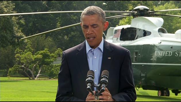 Obama made his comments and took a few questions from reporters on the South Lawn of the White House just before boarding Marine One for his summer vacation on Martha’s Vineyard in Massachusetts.