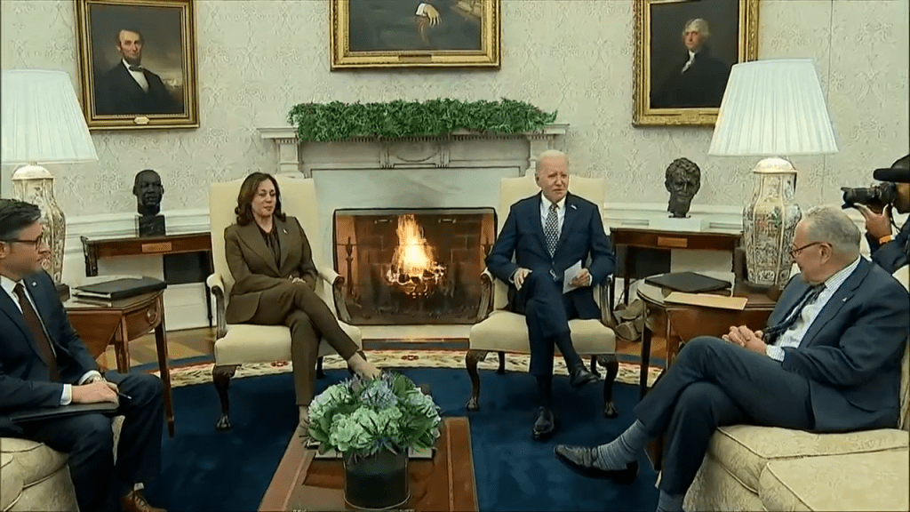 Biden hosted Schumer, Johnson, McConnell, R-Ky., and Jeffries, D-N.Y., in the Oval Office on Tuesday with Vice President Kamala Harris.