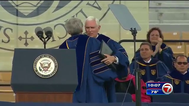 SOUTH BEND, Ind. (AP) — Dozens of graduates and family members silently stood and walked out Sunday as Vice President Mike Pence began his address at Notre Dame’s commencement ceremony.