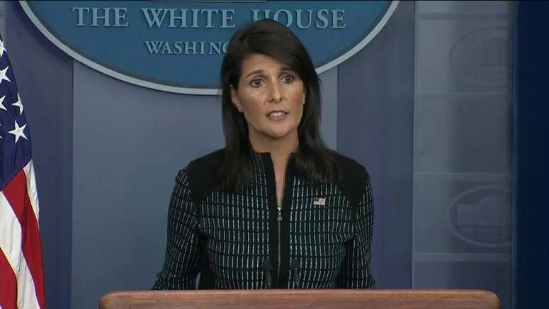 WASHINGTON (AP) — The U.S. ambassador to the United Nations said Sunday that women who accuse someone of sexual misconduct deserve to be heard, even if it involves President Donald Trump.