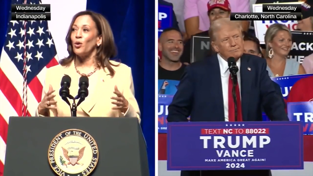 HARRIS: Like Biden, Harris has campaigned hard against “Project 2025″ — a plan that Trump has denounced but that was written by leading conservatives and many of his former administration officials.
