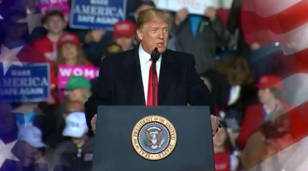 Trump sought in Montana to rally the crowd, which was bundled up against the November chill, by talking up the economy and tax cuts, new Supreme Court Justice Brett Kavanaugh, border security and several caravans of Central American migrants who are slowly advancing toward the U.S.-Mexico border.
