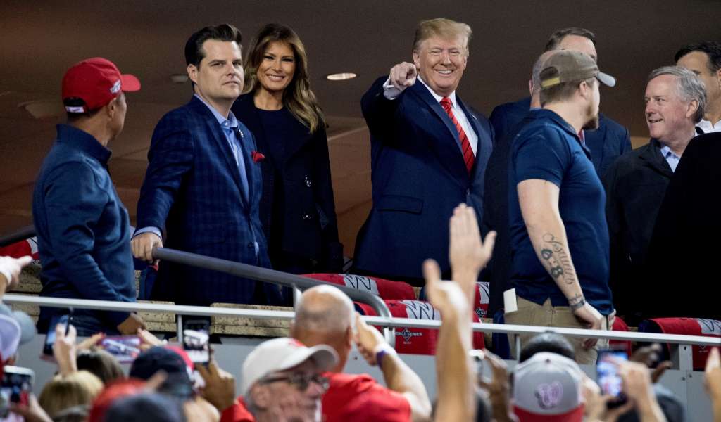Until Sunday night, Trump had yet to attend a major league game as president even though the White House is a few miles northwest of Nationals Park. A dozen or so congressional lawmakers accompanied the president, according to a list provided by the White House, including Sens. Lindsey Graham of South Carolina and David Perdue Georgia.