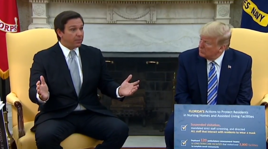 “I endorsed Ron and after I endorsed him he took off like a rocket ship,” Trump said. “He’s done a great job as governor.”