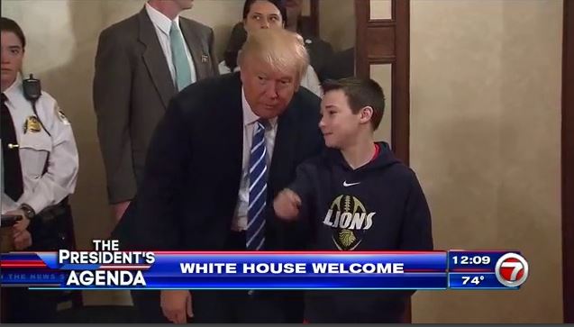 Among the first group of tourists were a group of fifth graders from the Briarwood Christian School in Birmingham, Ala. Trump randomly pulled one young boy from the crowd — 10-year old Jack Cornish from Birmingham — hugging him and patting him on the shoulders before sending him back to the crowd of envious schoolmates.