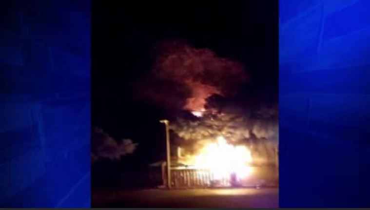 Officials say the outside of the building was left charred and that nobody was hurt.